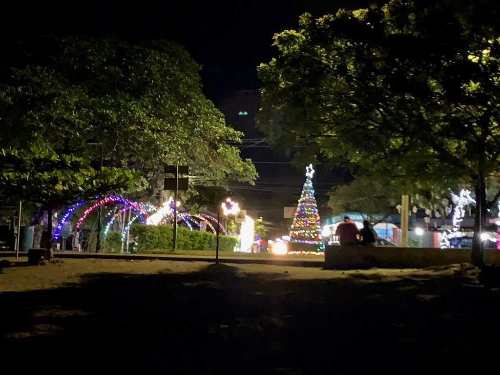 Back at a beachfront bar, we met with Mak, Niko, and Shane over drinks, snacks, and a few more stories. Well past sunset we found ourselves standing back on the beach, with waves licking the shore at our feet, the star-studded firmament spread above, and Christmas decorations behind.
