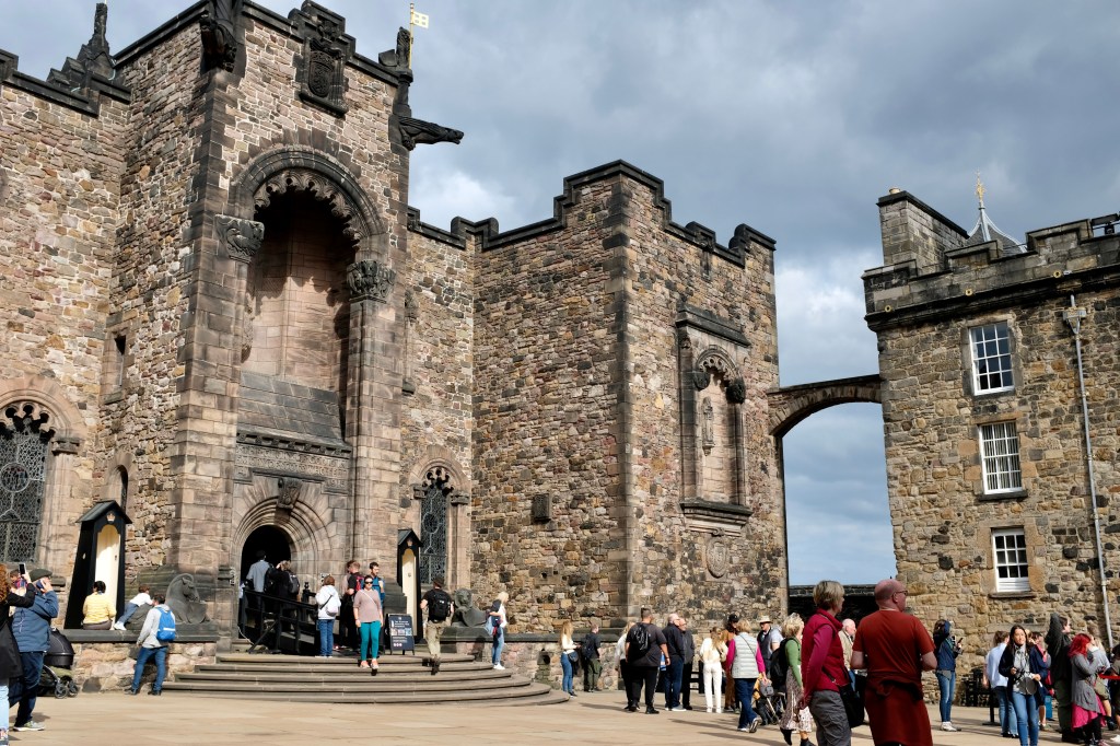 The Royal Mile takes its name from the two buildings that mark its upper and lower terminal endpoint. At the bottom is Holyrood Palace, which is the official residence of the British monarch in Scotland. Usually there are tours, but, given the Queen’s passing, these have been canceled until later in the week. So instead I stood outside the gate gazing longingly at the palace inside.