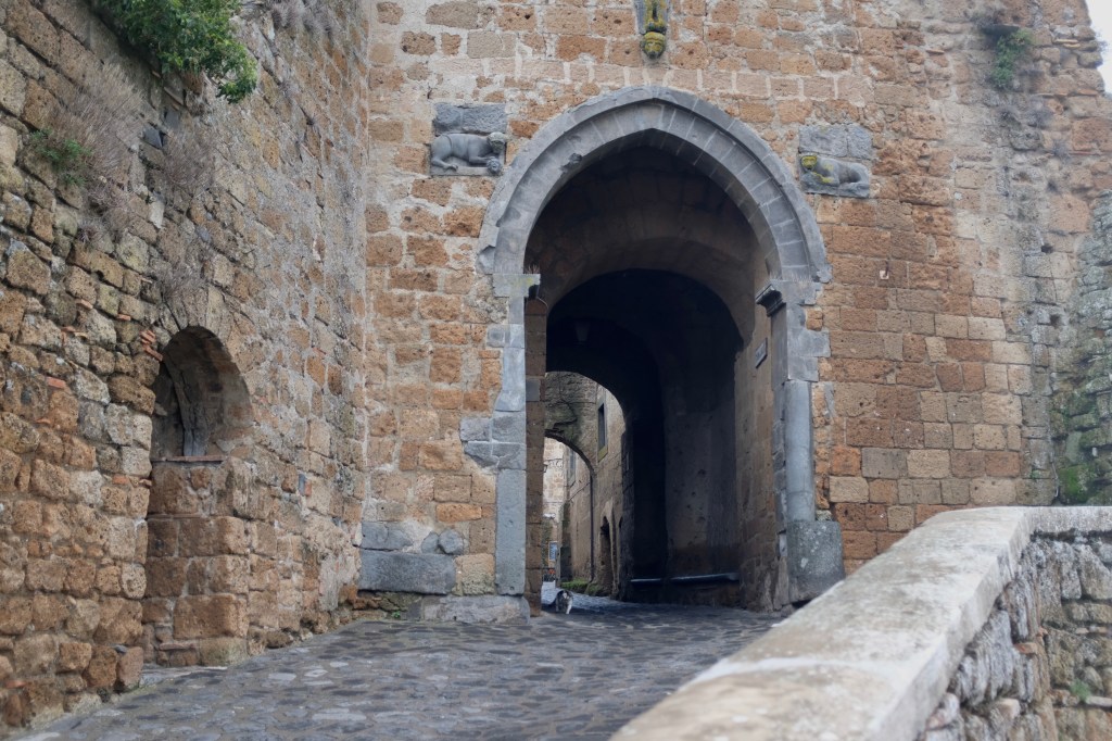 There, we again climbed out of the car, and this time freed the dogs from their crate. The group of us followed a nearby sign to the lookout point to find, the town of Civita Bagnoreggio, standing like it was set down on a giant stone pedestal. The town hung there like a tiny appendage at the end of a delicate hair of a road.