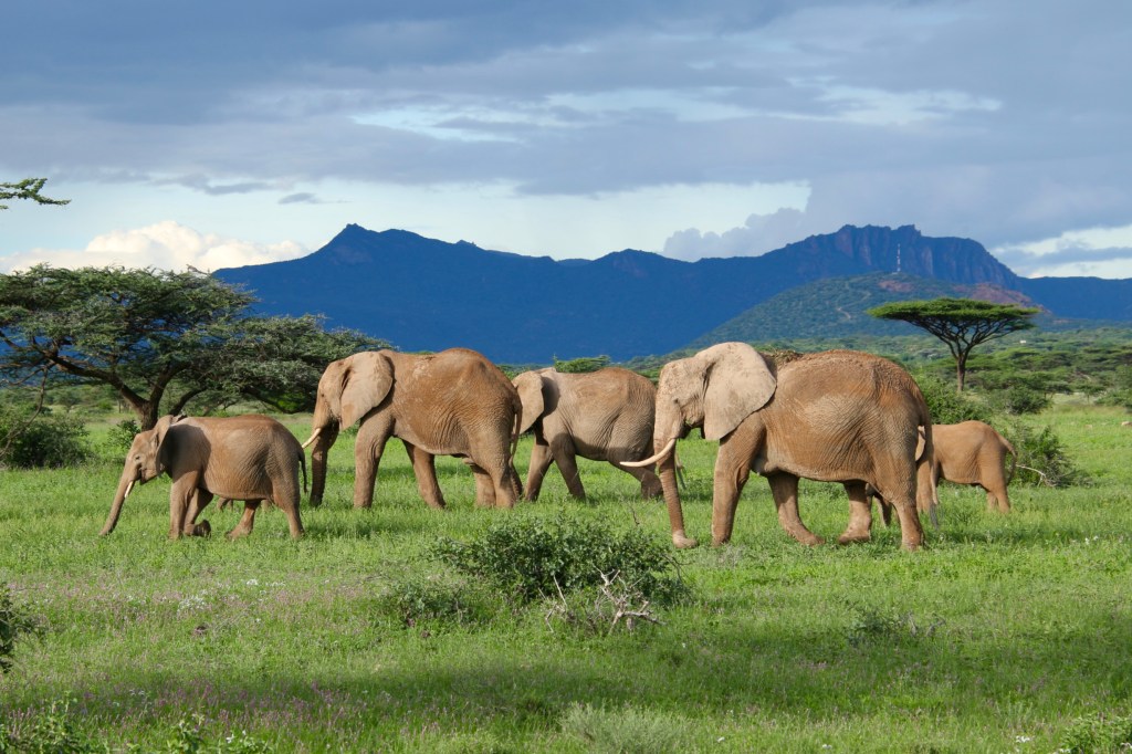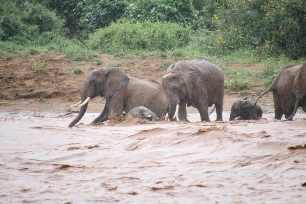 We bounced around the pathways and crossed a torrential river. Suddenly Sammy pulled the Land Cruiser sharply toward shore, announcing “there are elephants crossing!”