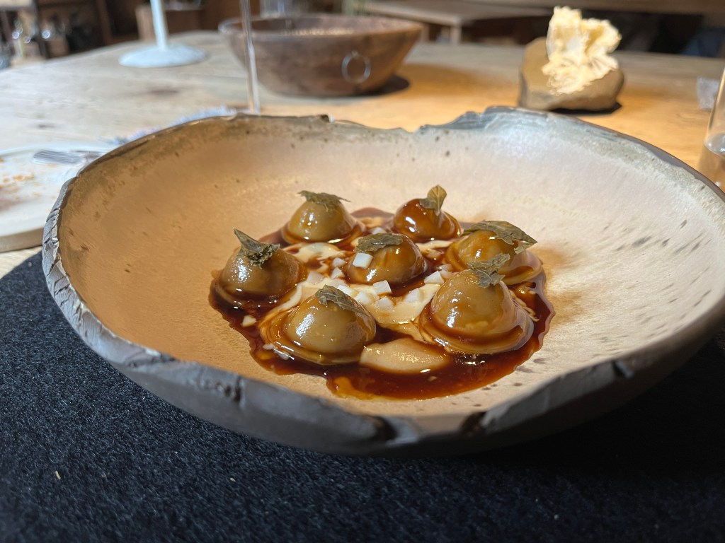 These delicate duck ravioli popped like soup dumplings in my mouth, and a subsequent course of hare was absolutely delicious, putting both of our minds at ease.