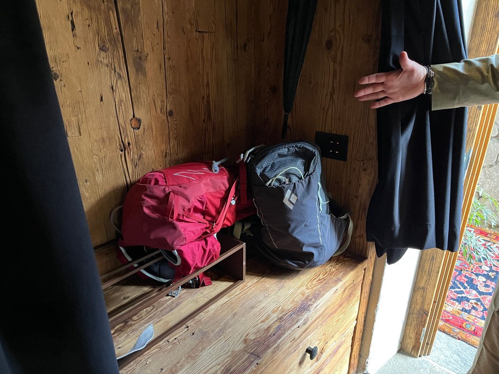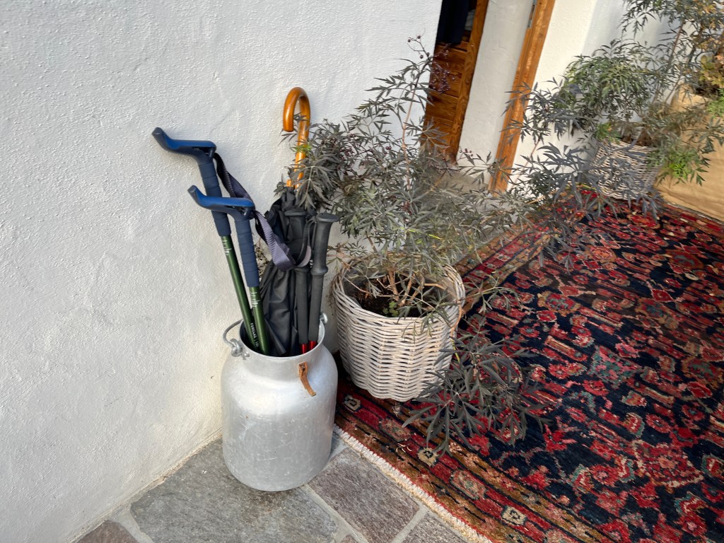 Even without such indicators, however, she is much more instinctively polite than I am and intuitively recognized the propriety of depositing her hiking poles in the umbrella stand. I, of course, followed suit.