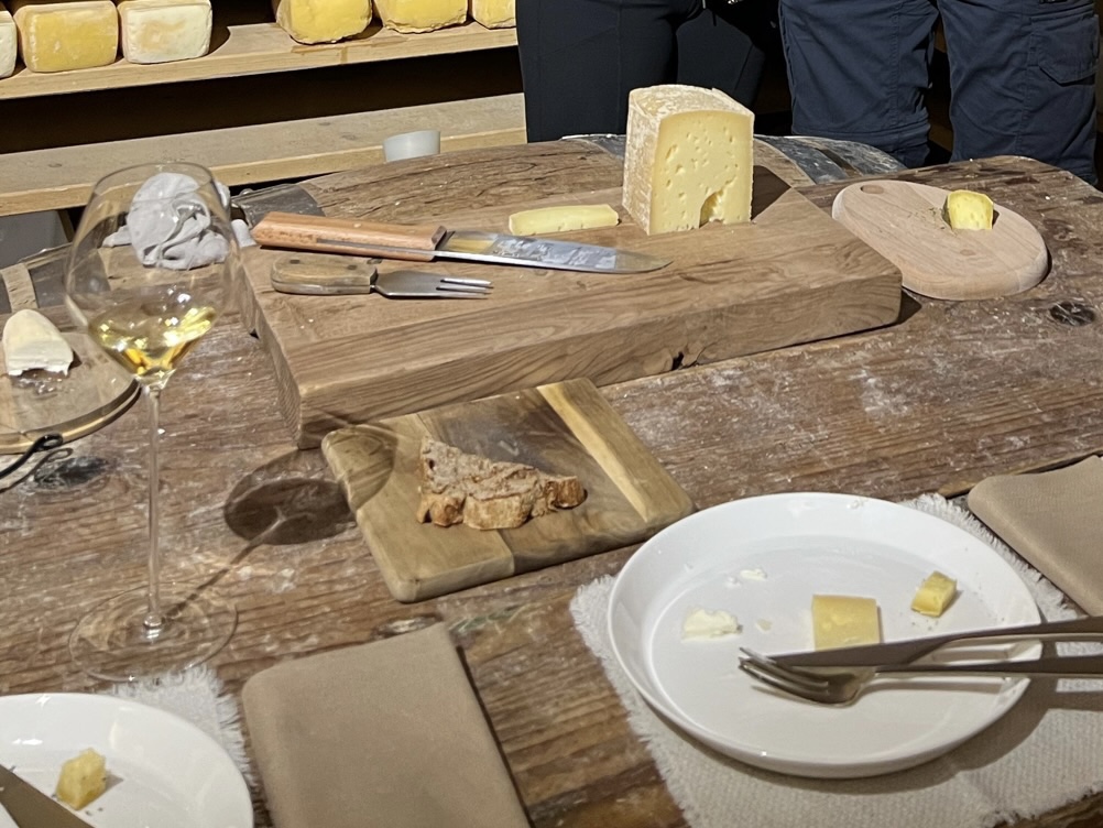 Feeling a bit awkward, we were both surprised when they dessert wine was served and they invited us to the cheese cave in the basement. There we tasted three housemade cheeses and reviewed the production and aging process.