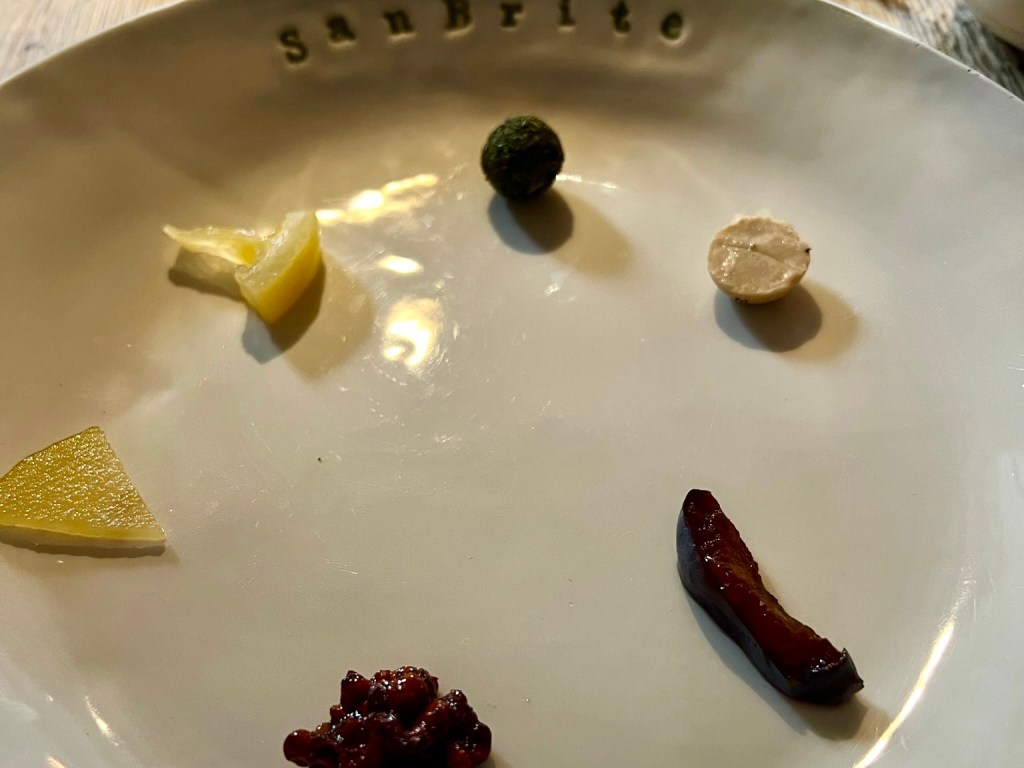 From the beginning, with scented hand towels followed by mushroom consommé, we were smitten (and I don’t usually like mushrooms). We were next offered a plate of house-made salumi, all of which melted flavorfully into our mouths.