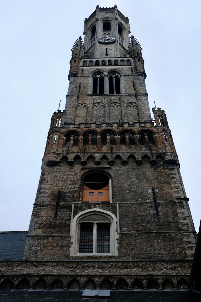 And the visit to the Belfry after involved a 366 step climb to well above the city, the trek mostly consisting of tiny-stepped runs of spiral staircases, with those visitors climbing periodically pausing to yield for those on their ways down.