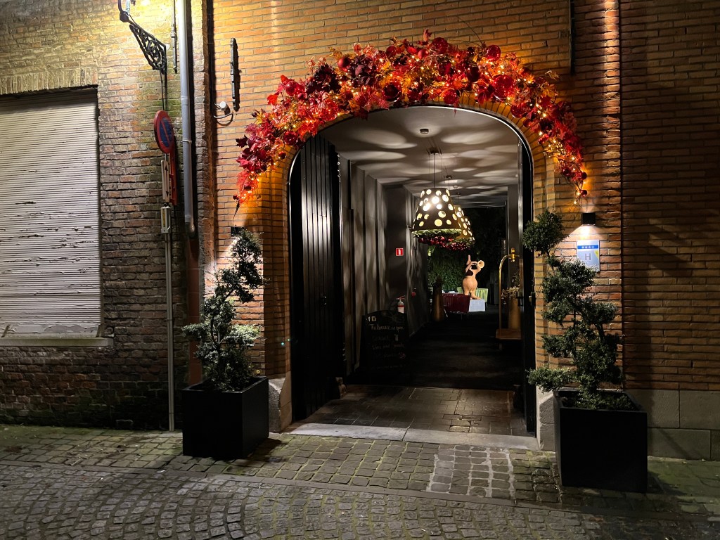 In Bruges I walked into my Christmas- bedecked hotel several hours ahead of check in time and was happy to deposit my bags and begin to explore.