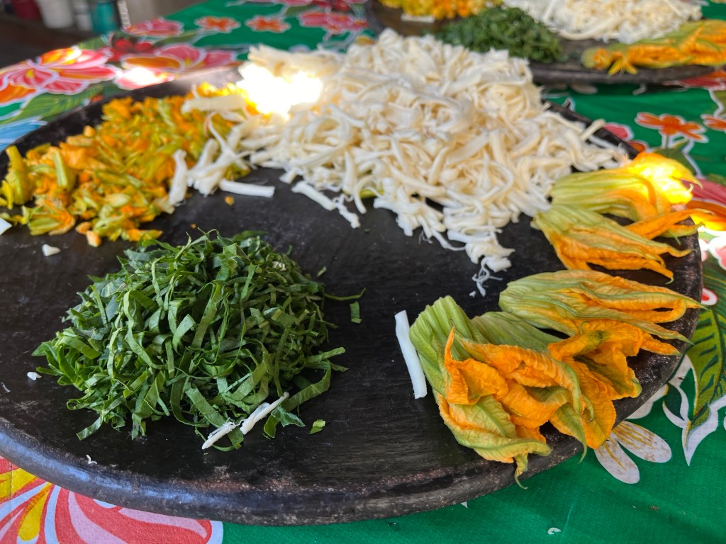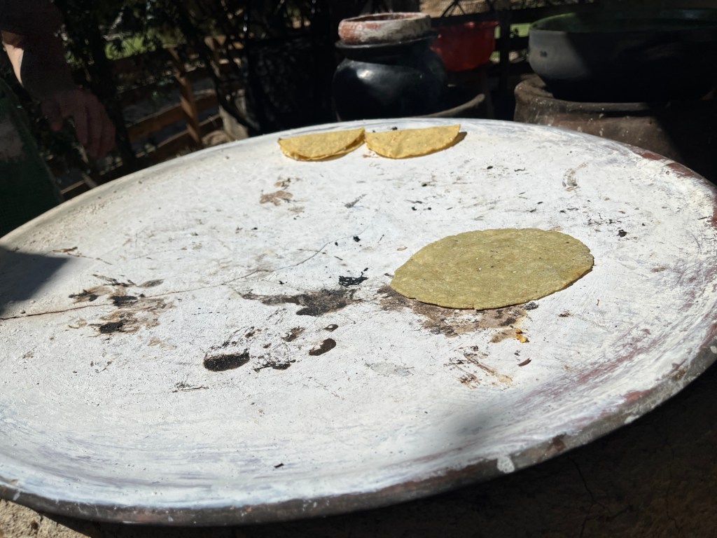 And we all made our own tortillas, grinding nixtamalized corn on a metate and cooking them on a comal.
