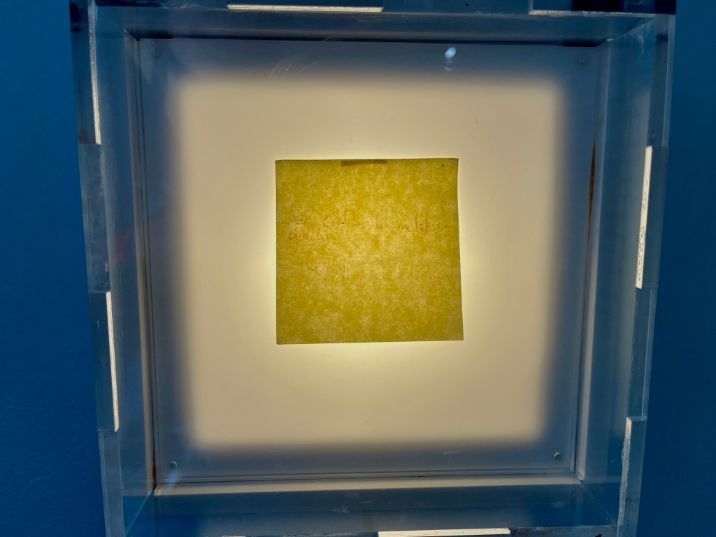 Or this post-it note: a missive of affection that was never delivered before the relationship ended. The ink is fading and barely readable now, and somehow I found that fitting.