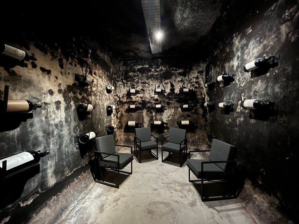 The guide showed me the massive vats that were once used for wine production. They were only supposed to be used for 5 seasons but were used for many more and now house racks of wine bottles and exclusive tasting rooms. The walls are a mottled shade of deep purple, bordering on black.