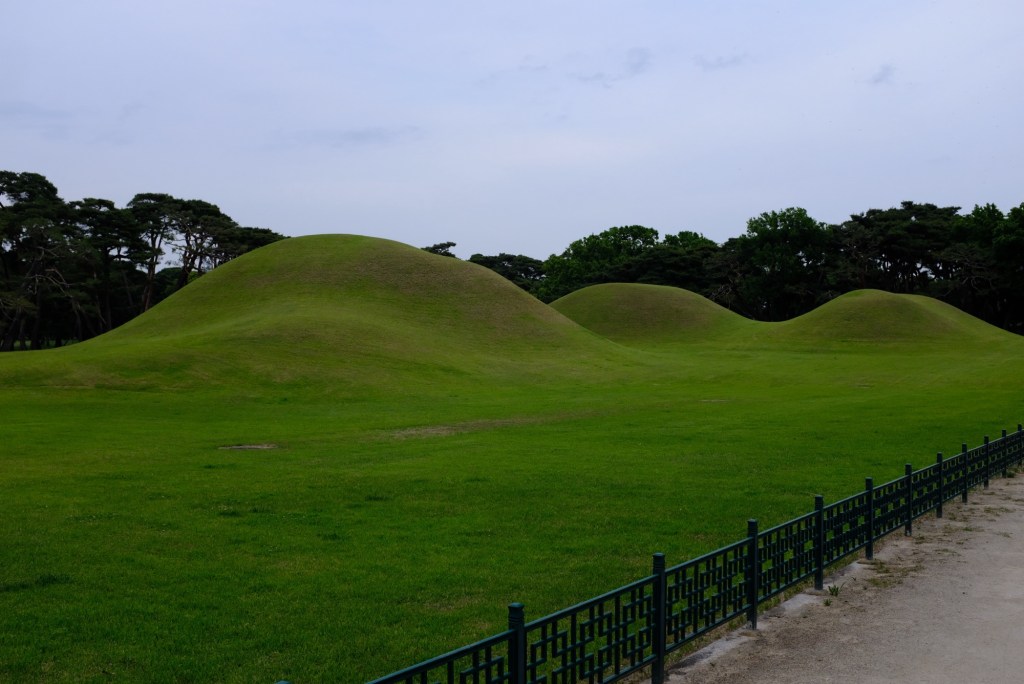 You see, I was standing in front of the Five Royal Tombs, which are known to be the burial places of the founding royal family of Silla. Buried here, under these five great mounds, are King Hyeokgeose, and his wife, Queen Aryeong, his son King Namhae, his grandson King Yuri, and his great-grandson King Pasa. King Hyeokgeose passed in 4 AD, and four of the first five rulers of Silla are entombed in this land.