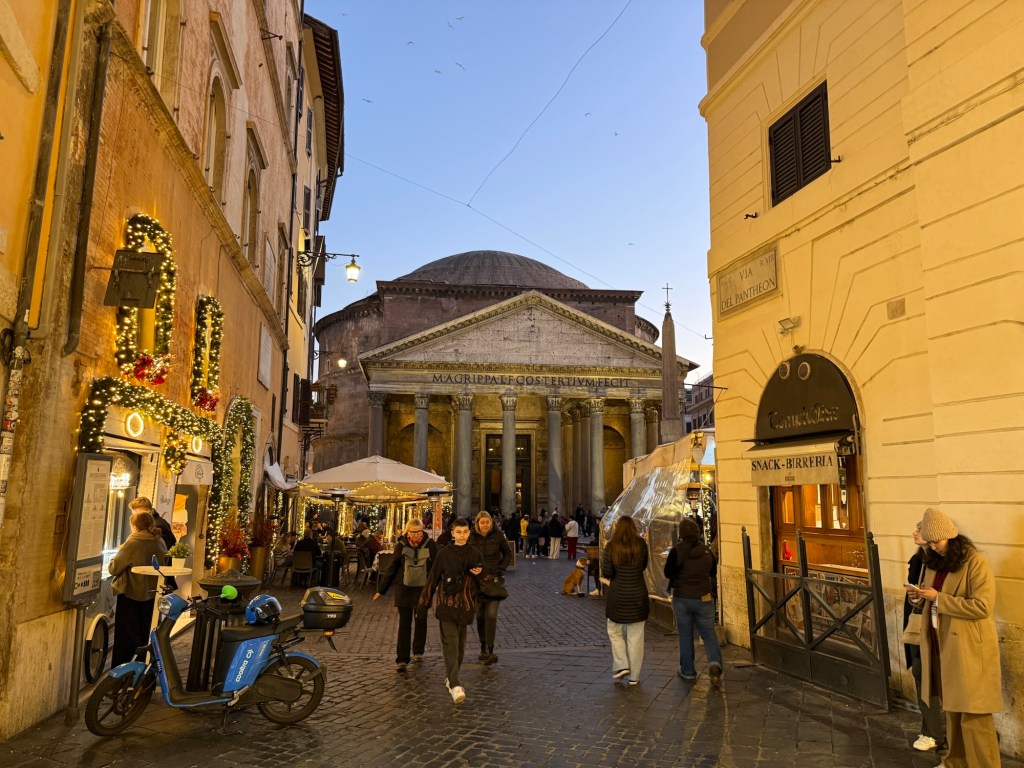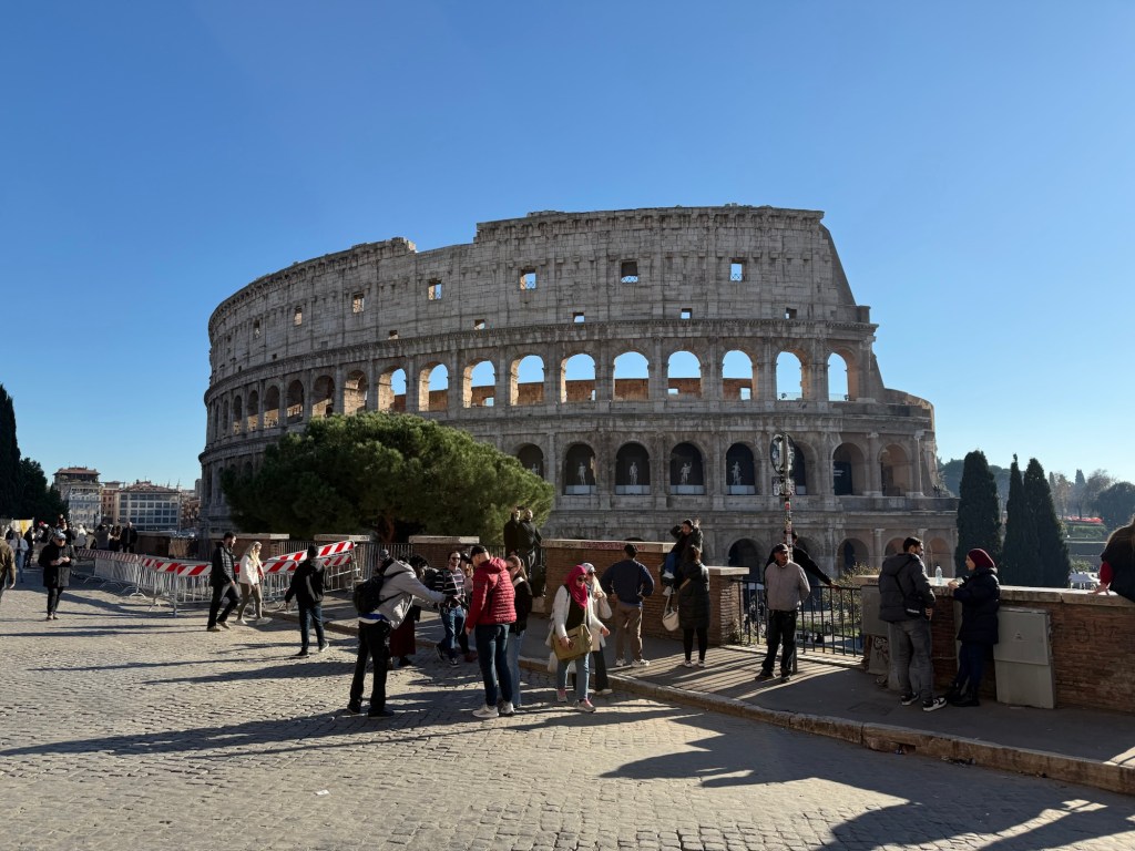 She sits on a quiet corner up the street from the Coliseum, and when the weather is warm you can sit at an outside table, under the trees that line the sidewalk. If you’re really fortunate the wind might sway the branches and you may capture a glimpse of the edges of the grand marble structure in the distance.