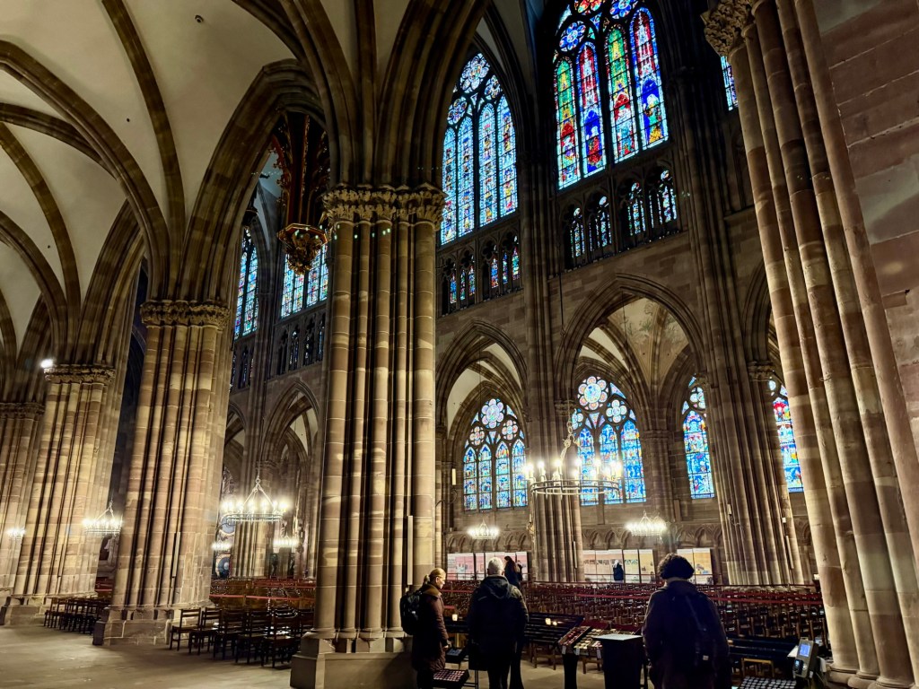 Upon entering, the windows were the first thing that captured my attention. Immense stained glass windows line the sides of the nave, a luminous manifestation of the delicate Gothic style. It reminded me of the Sagrada Familia in Barcelona, but light is a feature there, a spectacle, painting the interior with shifting bold hues. Here, the light is just a comforting presence.