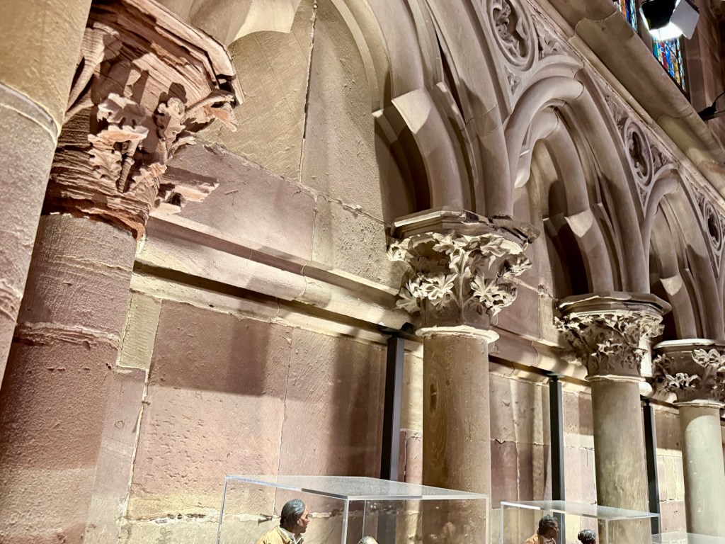 I remember being taught once that the Gothic sculptors didn’t have the skills of earlier eras, as they weren’t as adept with depiction of individuals, and maybe that’s true. Or maybe it’s a sort of bias. In any case, I can see that perspective in the coarseness of some of the fine work on these faces.