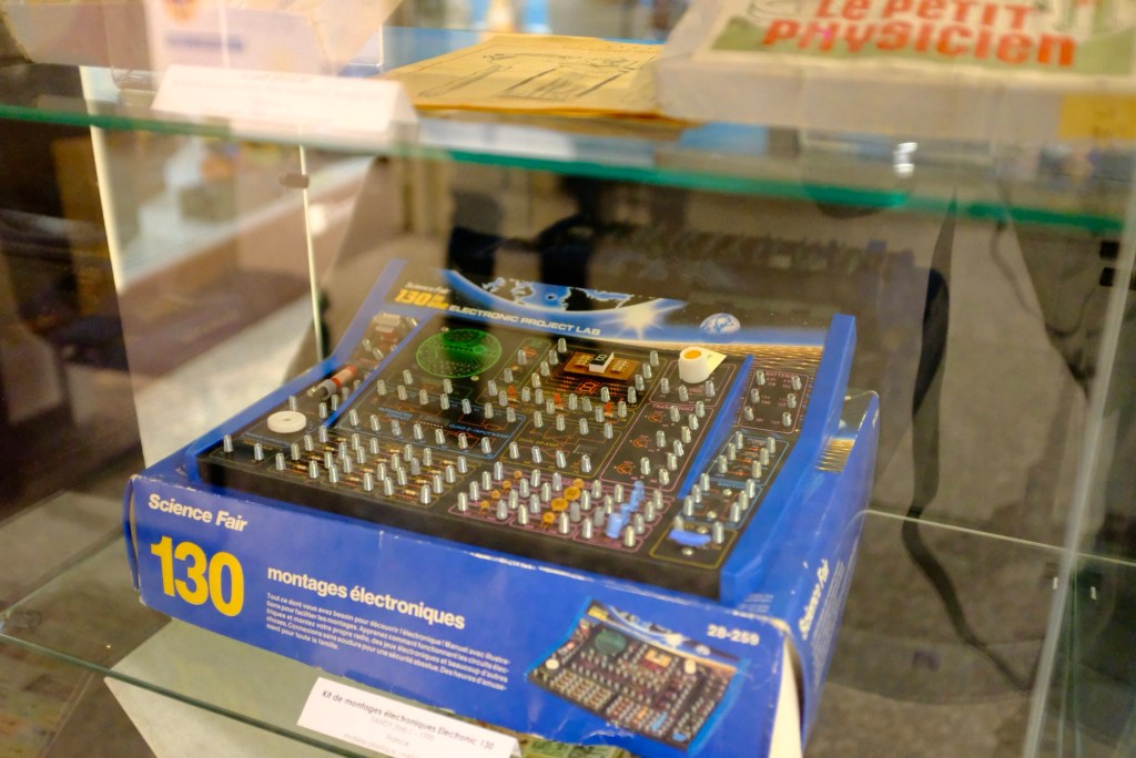 He really got a kick out of this electronic set from 1990, which came out well after his childhood (and mine). He told me again about how he learned electronics in the Navy, so this sort of thing was right up his alley.