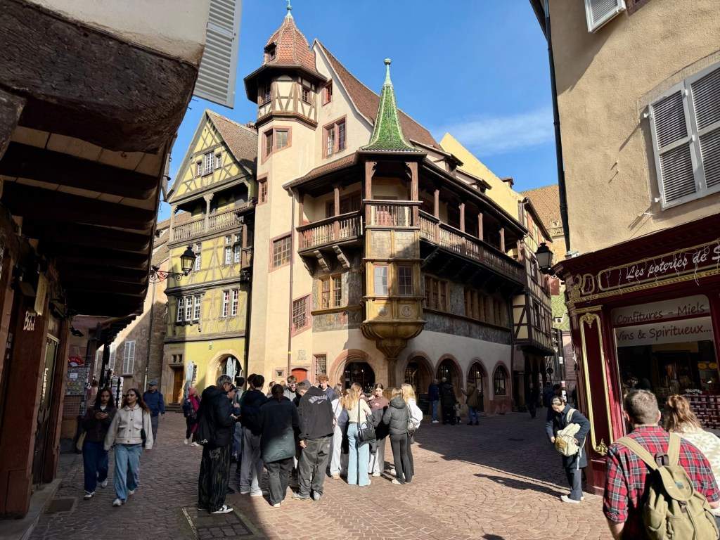 A small crowd of visitors huddled around the bridge for the obligatory photo opportunity. In the dying days of winter, with spring not yet emerged, the scene isn’t bedecked with flowers the way Colmar is depicted when you seek out information about it online, but it was still beautiful.