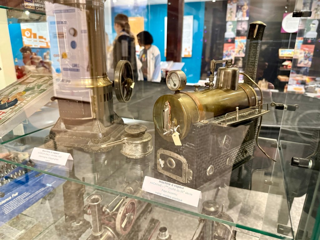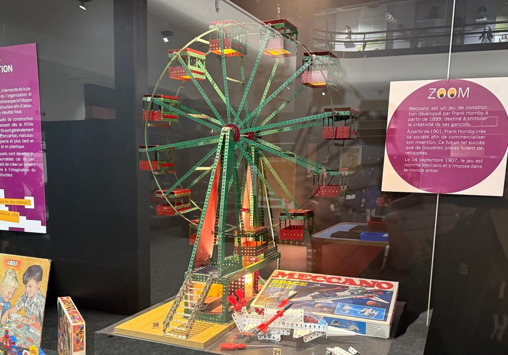 I saw his eyes light up looking at this display. He told me about about erector sets, and while this may not have been exactly the erector set he knew, because it is the French version, it was darn close.