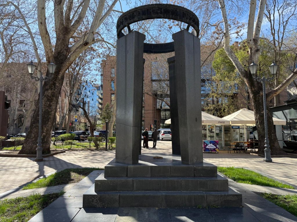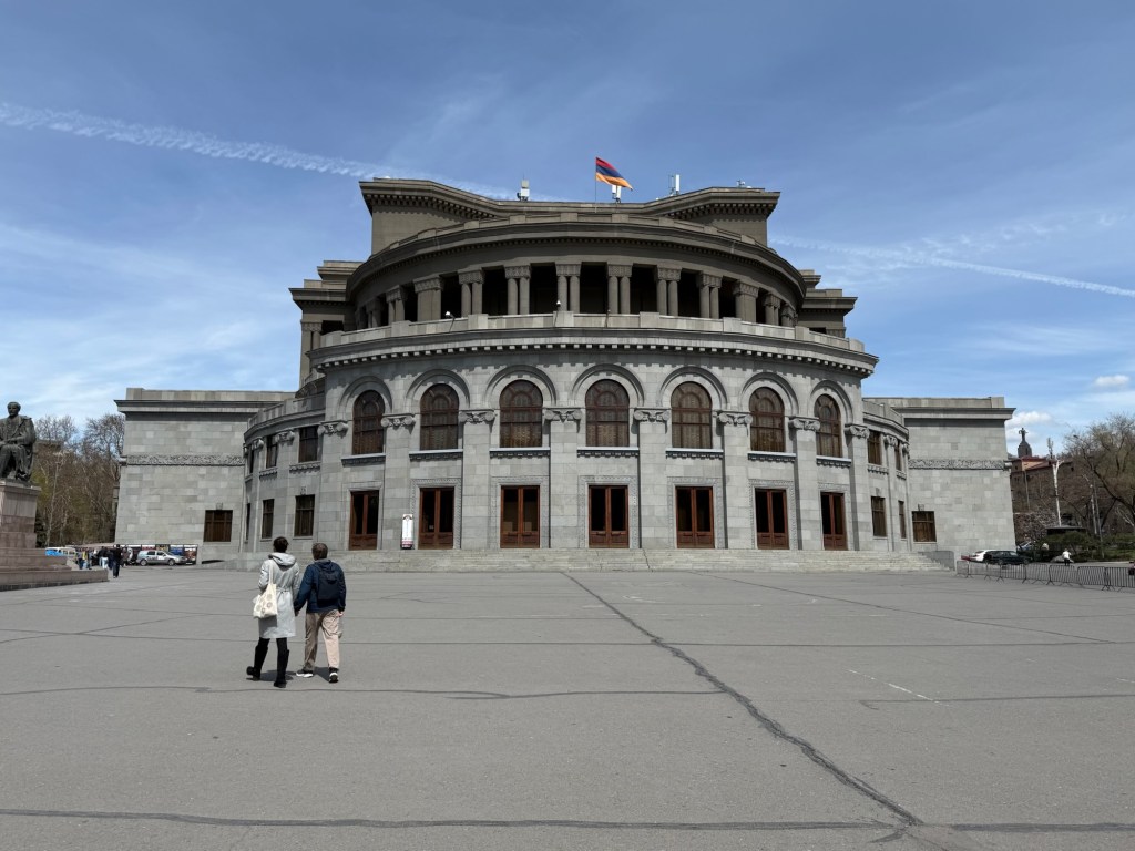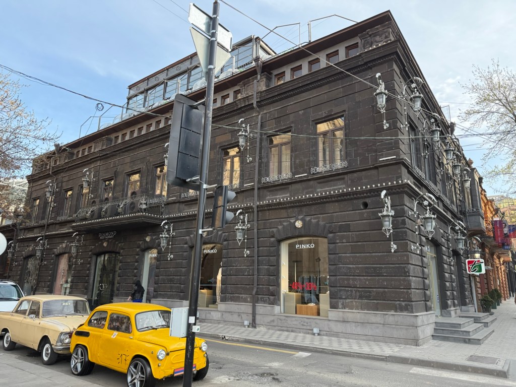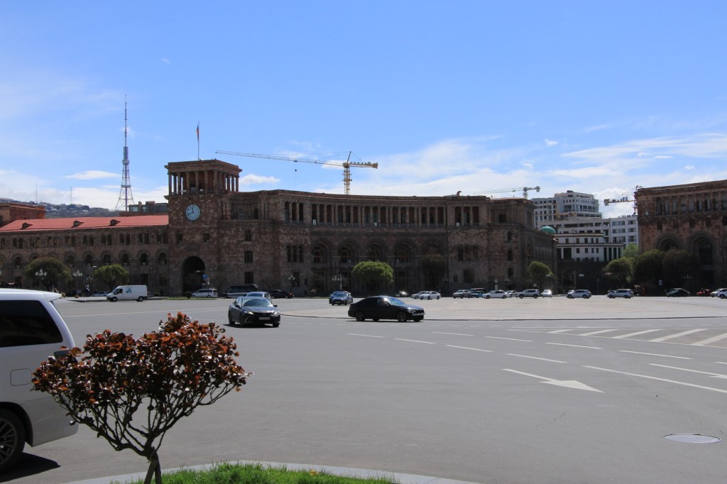 The buildings on Republic Square, core to the city, are instead built of pink tuff, which indicates that they date to the Soviet era. They were designed in the brief independent period from 1918 to 1920, and the Soviets allowed the construction to proceed as the plans had already been made. This is why they lack the harsh brutalist Soviet architectural style I’ve seen in places like Romania.