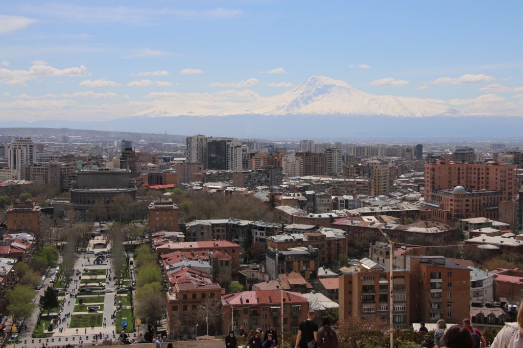 At the top, rest is required, and an opportunity to take in the view. The city stretches out below, with the majestic slopes of snow-covered Ararat rising in the distance.