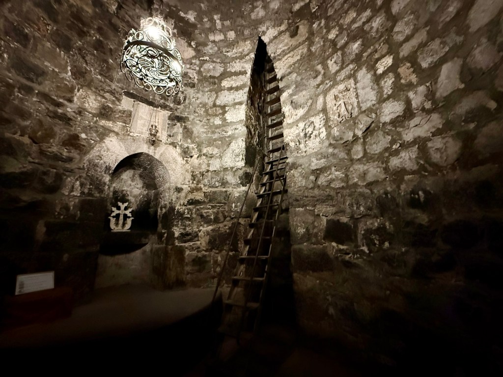 The pit is open to public access by narrow opening and ladder. The space is a chapel now, and the spiritual importance is unmistakable.